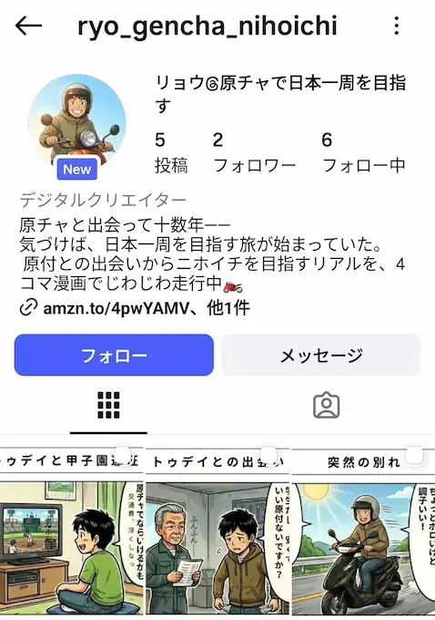 Instagramにて4コマ漫画『原チャでニホイチ』の連載をスタートしました。