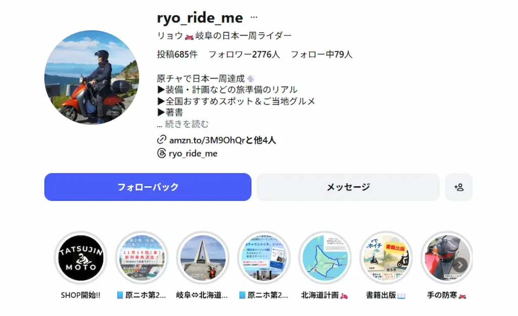 サイト内の記事(コラム)では書ききれない、旅やバイクライフのリアルをライブ感たっぷりにお届けしています。