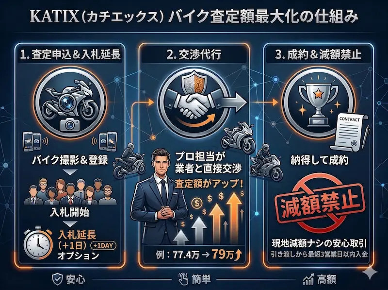 カチエックスは、バイク売却を考える方にとって、簡単かつ高く売ることを実現する便利なサービス!